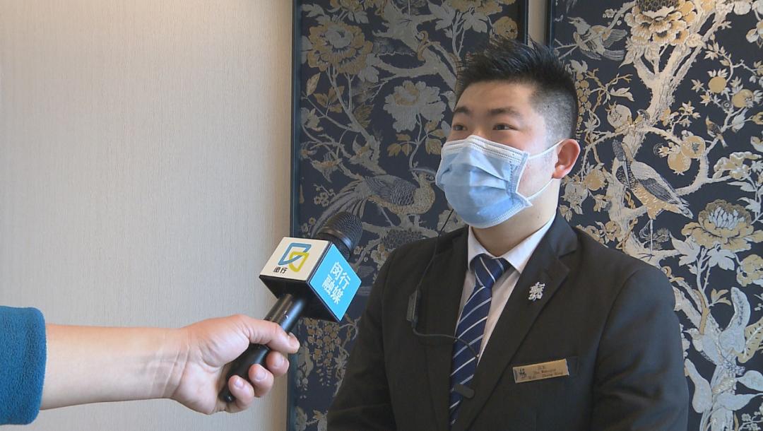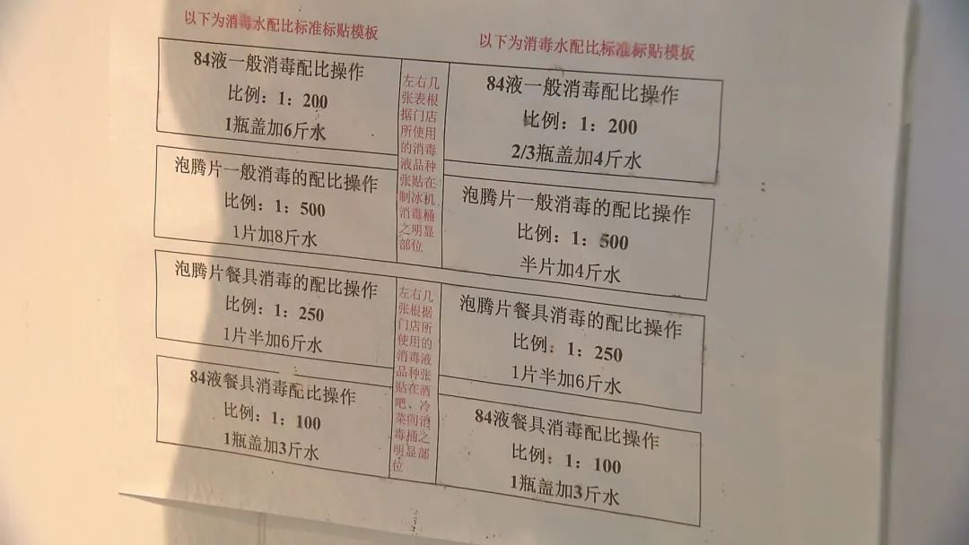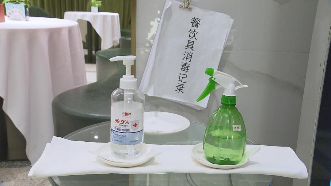 张兵向记者表示:“我们所有餐具都会做高温处理,我们的内部人员上班、中午后也会进行两次测温,每四小时用消毒水洗手,并且所有的上班人员必须戴口罩。同时,我们给客人也提供免洗手液,并备有大量口罩,如果客人有需要,我们会及时给顾客更换,包括我们自己的口罩也是四个小时更换一次。”