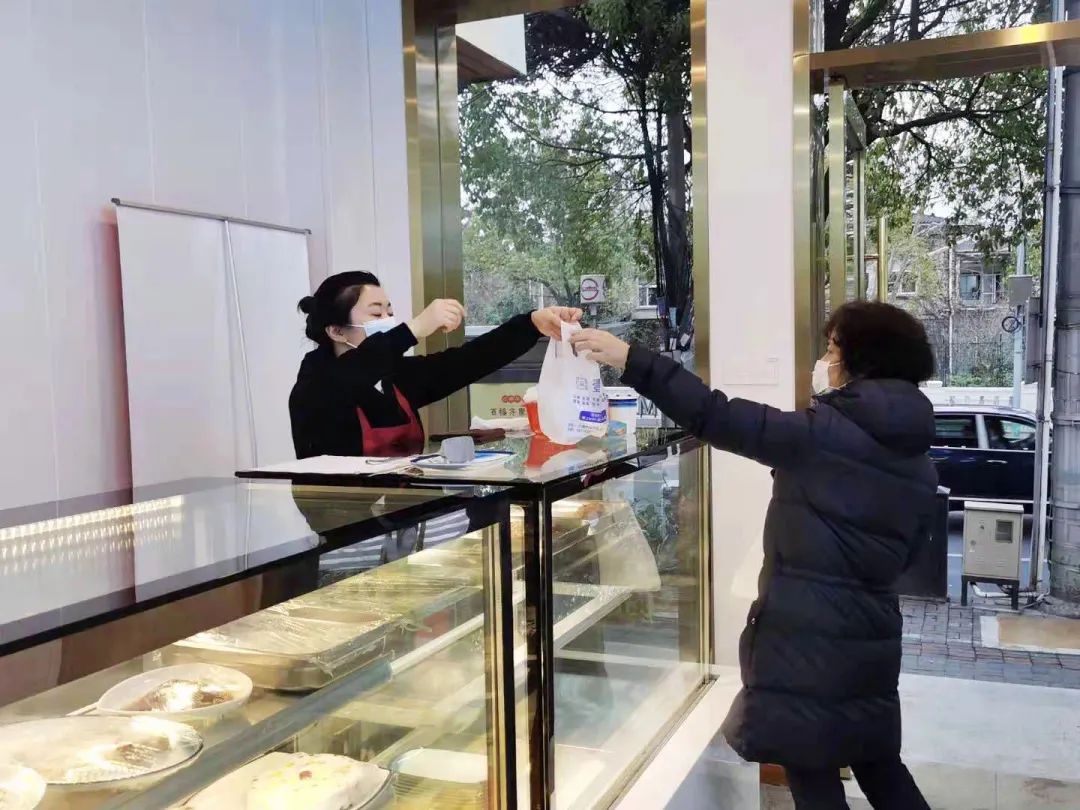 陆陆续续进来的顾客也都选择打包外带,店家在柜台上准备了洗手液、餐巾纸等,做好基础防疫措施。