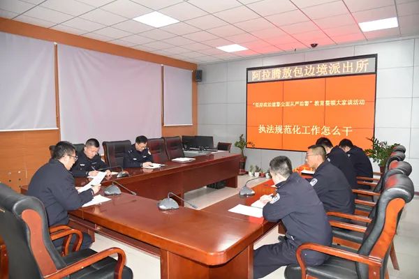 阿拉腾敖包边境派出所根据“坚持政治建警全面从严治警”教育整顿大家谈活动要求,围绕派出所2021年执法规范化建设开展大讨论。