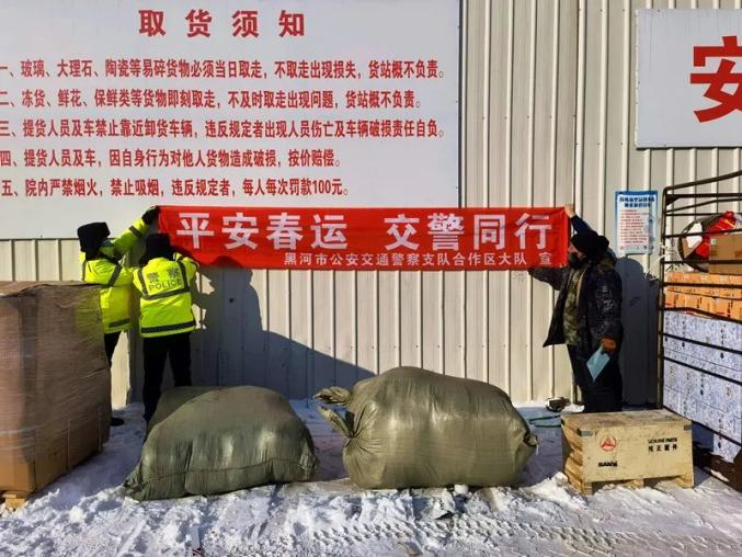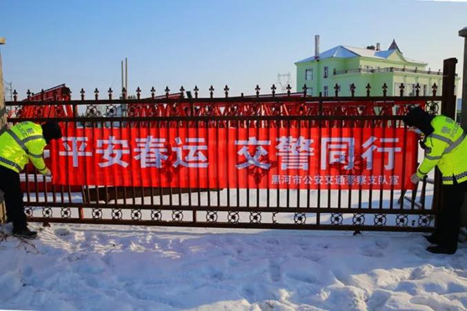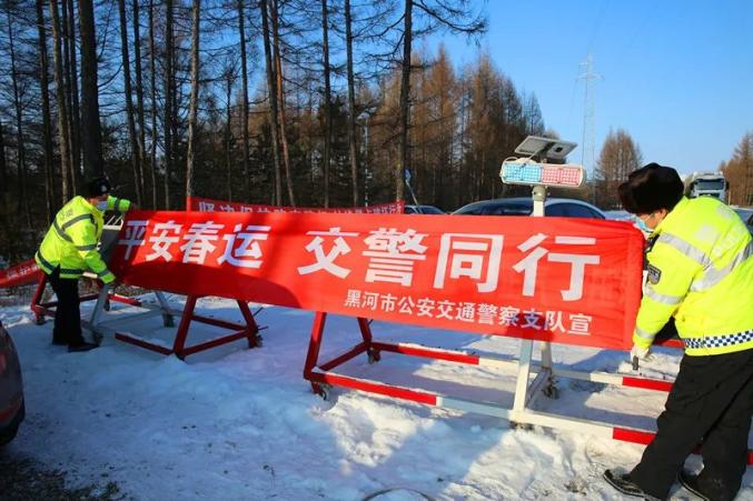 黑河市公安交通警察支队按照上级部署要求,全面开展春运安保工作。一方面推动客运驾驶人安全宣讲和车辆安全隐患排查工作,着力构建稳固安全基础,紧盯外卖、物流、危化品运输等运营企业,加紧主体责任落实,努力构建安全生产环境。另一方面,加大宣传引导,利用LED电子显示屏、农村劝导站、警保劝导站等有利区位,大力开展宣传教育工作,着力构建安全文明春运氛围。