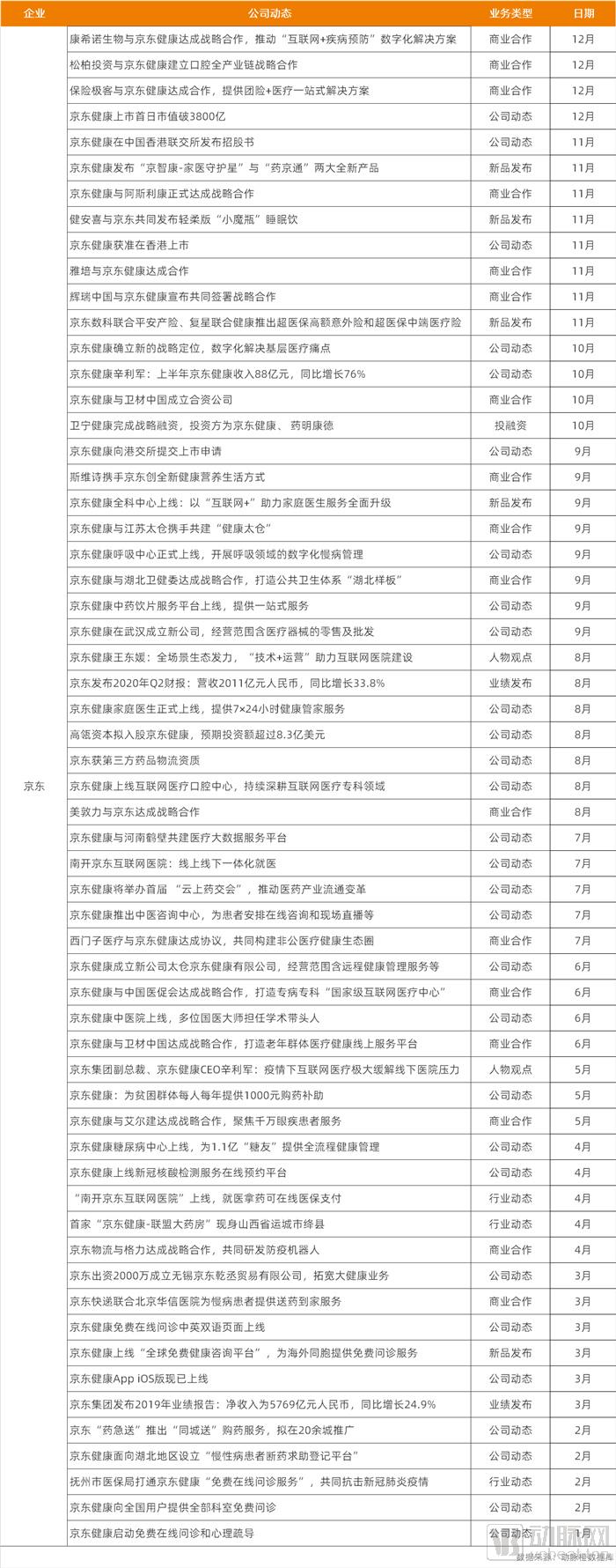 也是在这个过程中,京东健康走向了上市。10月,京东健康上半年业绩公布,收入88亿元,同比增长76%;11月,京东健康获准在香港上市;12月,京东健康宣告上市。值得注意的或许是,在线医疗健康服务收入占据京东健康整体收入比重较小,招股书并未单独予以披露。未来发展如何,仍有待进一步观察。