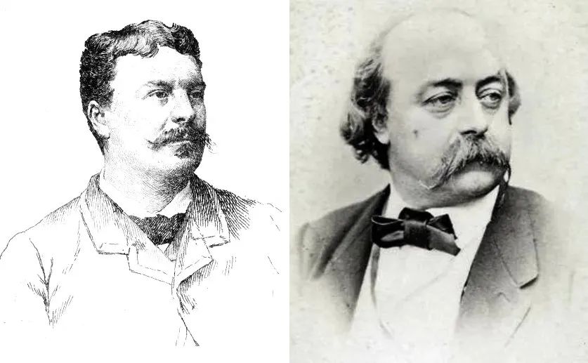 青年莫泊桑(左)和福楼拜但是据我所知,《论文》中穿插的这一部分文字,基本上是摘抄莫泊桑自己一八八○年八月二十三日发表于《高卢人报》的散文《下午》的一些片段,只是福楼拜家聚会的一个概述。而《下午》一文是写一八七九年七月的一个星期日下午在巴黎圣奥诺雷城厢街福楼拜家的聚会,从主人到客人,从候客到送客,文章对这次聚会做了全过程、更完整的描述。我三十多年前在国内时选译《下午》,就是因为它集中、详细、精彩地再现了该时代法国文学沙龙的典型情景。