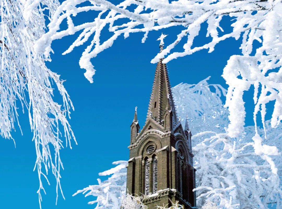 雾凇岛(韩屯)雾凇观赏带:在松花江的下游,散落着几个美丽的天然小岛,由于独特的地理环境,在冬天里常常被雾气笼罩,雾凇几乎天天降临此地。