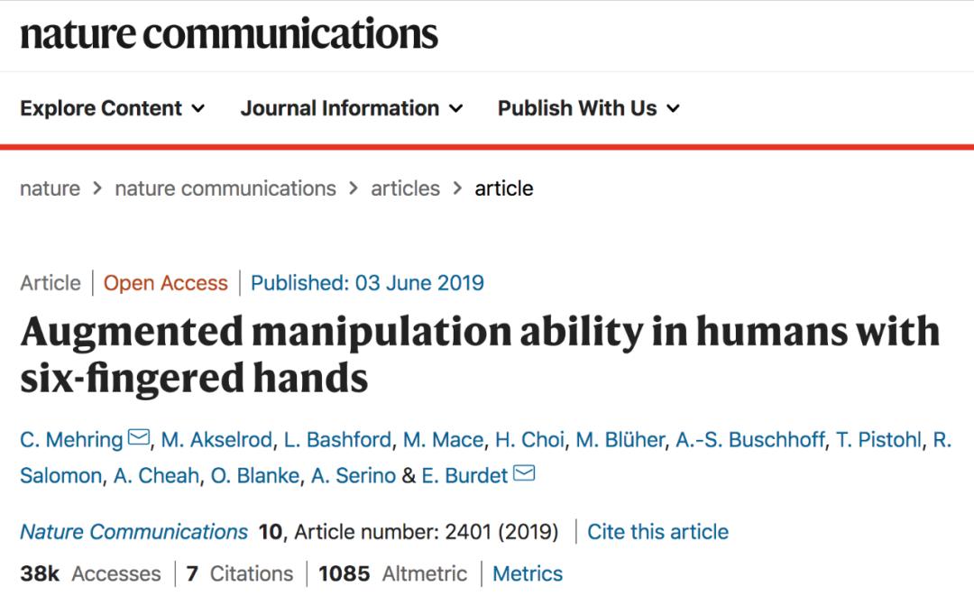 这项研究的作者说:“患有功能性多指的个体提供了一个独特的机会,可以研究多指肢体的神经控制,分析人体的内部表征以及人类感觉运动能力的极限。”另一个挑战是,使用多指受试者的数据来探索机器人肢体的选择,因为多指的人习惯于使用多余的指头,因为他们与生俱来。一个接受额外的机器人肢体的人可能永远不会达到同样的灵巧程度和使用范围。