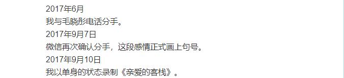录音文字版本。图源水印他在做节目期间朋友圈发的都是快乐的,然后在微博发的都是伤感的,毛晓彤认为他一个月之前就在设计分手,挖坑让自己跳。