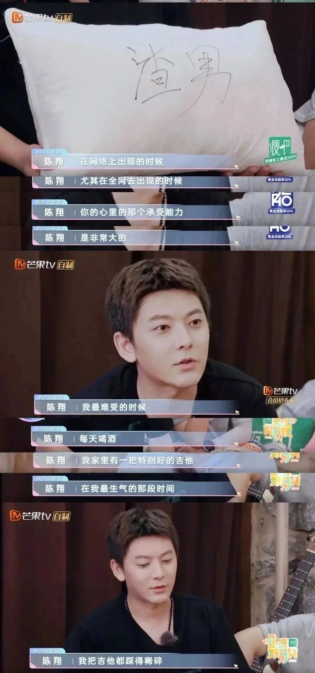 陈翔被传出轨后,他2017年9月在《亲爱的客栈》里哭四年前不说是因为料太多怕被捶死,四年后觉得时过境迁,证据也湮没了,再加上自己也太不红了,干脆横下一条心再拿旧事炒一把,没准还能杀出一条血路。