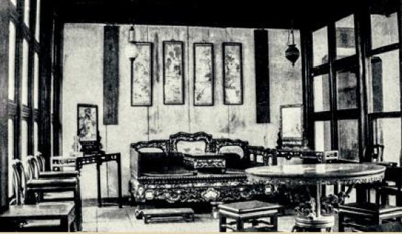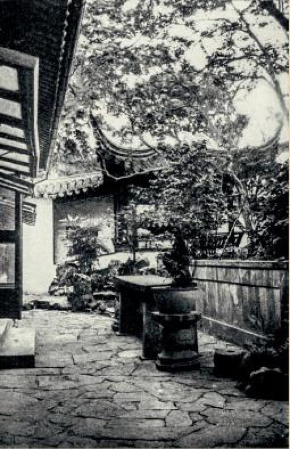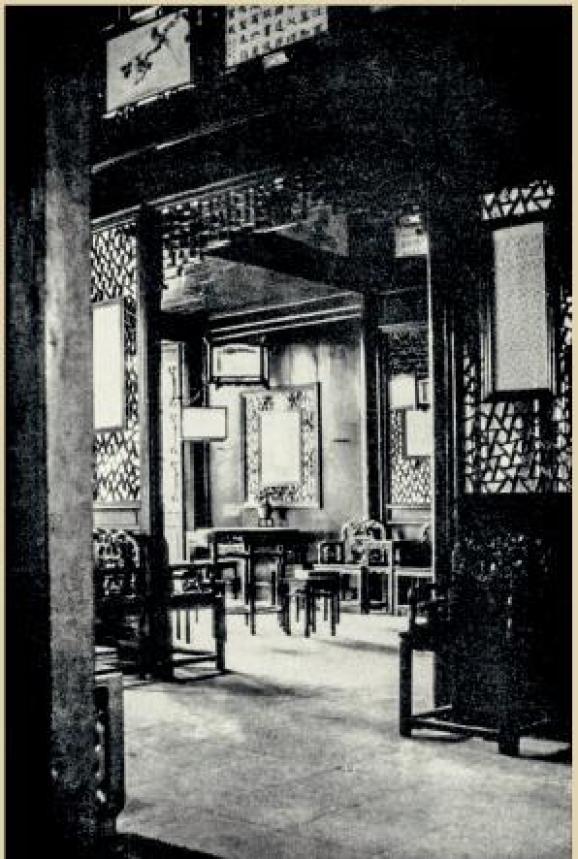 ▲(留园)内院用于品茶、弹琴的建筑。所有的家具均是红木的,地面铺的是一种特制的水泥板。包爱兰:《中国园林览胜:留园与狮子园》,伦敦,1943年。
