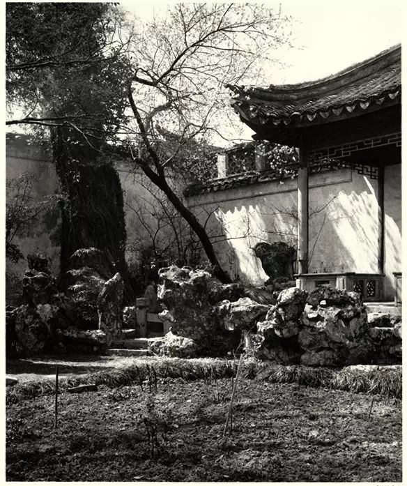 ▲(留园)花坛的另外一侧。用石板铺成的冰裂纹十分好看。包爱兰:《中国园林览胜:留园与狮子林》,纽约,1943 年。