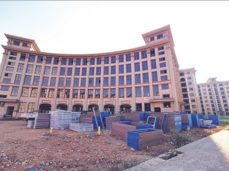 工地上欣欣向荣的景象,似乎让人们忘记了它曾经艰难的过往,只有未盖好的楼里留下拉着的电线、板材搭建的简易楼梯、楼栋之间些许植物,向人们彰显着曾经有人在这里住过的历史。