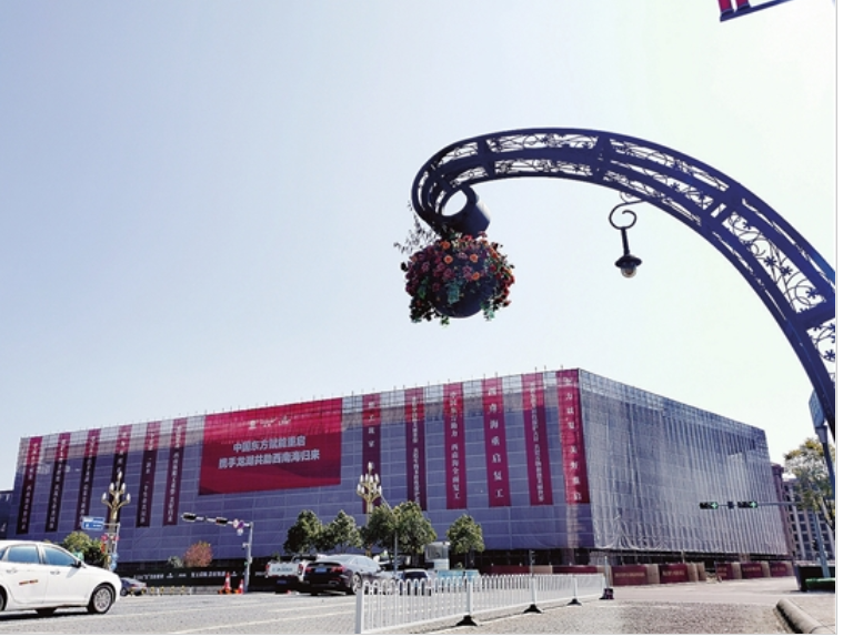 随后,记者沿着前卫西路来到仁泽路西南海项目所在地,看见该项目外围已经被围挡起来,有工人在为前卫西路边的烂尾项目安装安全网,安全网上挂着红色的标语:“复工起航 美好焕新”“凝心聚力 赋能重启”“中国东方赋能 西南海重整归来”等字样。