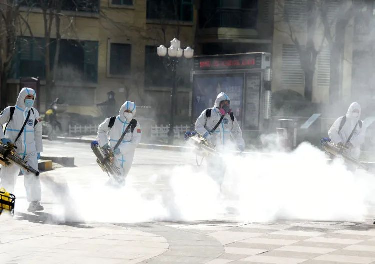 1月26日中午,河北省石家庄市蓝天救援队队员在桥西区恒大华府小区进行消杀作业。身披白色“铠甲”,手持“长枪短炮”——对于这些“消杀人”,我们早已没了最初的恐惧。