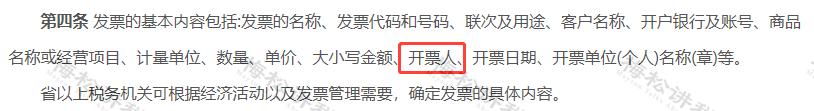 这里仅规定了“”开票人”是发票的基本内容,“复核人”属于可填可不填项目。《关于做好增值税发票使用宣传辅导有关工作的通知》(税总货便函[2017]127号)的第十二条规定
