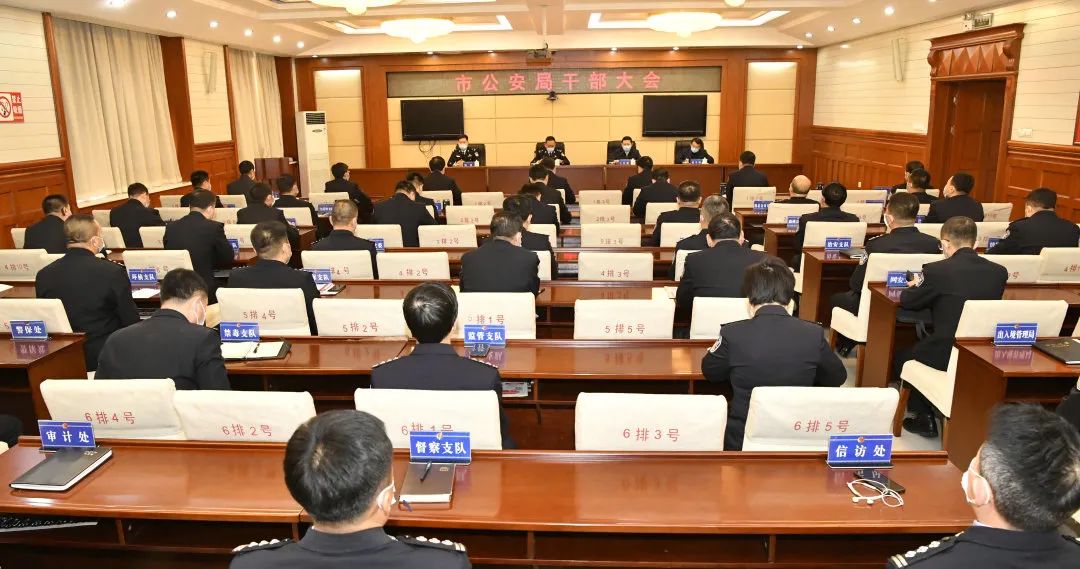 市委常委、组织部长、统战部长王任刚在讲话中指出,要突出政治建设,永葆绝对忠诚的政治本色。要毫不动摇地坚持党对公安工作的绝对领导,深入学习贯彻习近平新时代中国特色社会主义思想,增强“四个意识”,坚定“四个自信”,做到“两个维护”。严格执行《中国共产党政法工作条例》等党内法规,严格落实重大事项请示报告制度,确保省、市各项决策部署落实到位。要勇于担当实干,高质量推动平安白城建设。全市各级公安机关和广大民警要继续发扬实干精神,扎实做好新时代公安工作;紧紧围绕庆祝建党100周年,聚焦“十四五”主要目标和“一城三区”建设,全力营造公平有序的法治环境。要当好忠诚卫士,打造一支过硬的公安队伍。全市广大公安民警继续保持不怕苦、不喊累、不怕牺牲和勇于同各种犯罪分子做斗争的崇高精神。始终把“四个铁一般”标准贯穿队伍建设全过程,不断提升执行力、战斗力和落实力,打造一支对党忠诚、服务人民、执法公正、纪律严明的过硬队伍。要深化作风建设,树立人民警察的良好形象。健全完善全面从严管党治警制度机制,严格执行中央八项规定精神,坚决防止和克服形式主义、官僚主义问题。省公安厅党委委员、政治部主任刘星在会上强调,要牢记使命,忠诚履职,切实维护好国家安全和社会稳定。要毫不动摇地坚持党对公安工作的绝对领导、全面领导,确保公安队伍绝对忠诚、绝对纯洁、绝对可靠;全面贯彻总体国家安全观,维护一方稳定、守护一方平安;充分认识春节和全国“两会”期间社会治安面临的严峻复杂形势,提升大防管控力度,强化重点要害管控,源头防范化解各类风险隐患,坚决维护白城市安全稳定。要围绕中心,服务大局,全力推动公安工作创新发展。树立创新理念,紧跟时代潮流,勇于变革、勇于创新,着力提高公安工作现代化水平;以大数据为公安核心动力,创新数据警务新模式,全力推进联合作战指挥体系建设重点任务;持续加强以派出所为重点的基层基础工作,加快推进枫桥式派出所的创建;全力服务保障经济发展,持续优化政务服务,继续深化公安“放、管、服”改革,为企业营创良好营商环境。要抓好班子,带好队伍,着力打造过硬公安铁军。切实贯彻习近平总书记重要训词精神,努力打造一支忠诚干净担当的过硬公安队伍;扎实推进“坚持政治建警全面从严治警”教育整顿实践活动,聚焦实战要求、强化教育训练,不断提升白城公安队伍专业化、职业化水平;以首个人民警察节为契机,全面落实激励担当作为,不断增强广大民警职业荣誉感、自豪感、归属感,提升全市公安队伍凝聚力、向心力、战斗力。