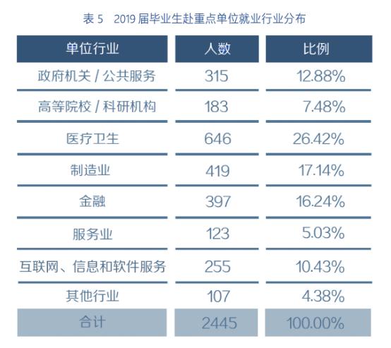 医学、制造业、金融、政府机关/公共服务行业的毕业生占比都较大。这些行业上海都有,而且全国领先,复旦的毕业生就没必要去外省就业,加上上海落户对复旦人格外照顾,因此,留沪的比例非常大。