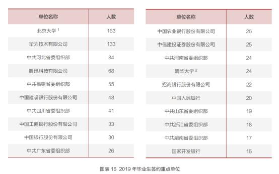 我们先看北大才子都去了哪些单位: