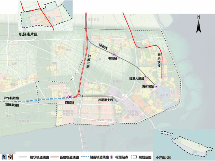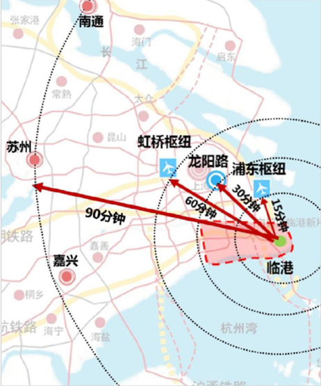 2月1日发布的临港新片区综合交通“十四五”规划提出,实现新片区主城区“15分钟到达浦东国际机场、30分钟可达龙阳路枢纽、60分钟可达虹桥国际机场、90分钟可达长三角毗邻城市”等出行目标,并明确铁路系统的发展建设任务包括:“积极配合推进沪通二期、沪乍杭铁路项目建设,全面融入国家交通运输大通道和长三角高铁网;加快建设两港快线,加强与浦东枢纽联系;启动四团综合交通枢纽规划建设……”