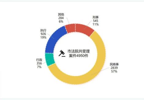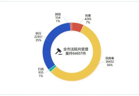 2020年,全市法院共受理各类案件64657件,审结63749件,结案率98.60%。其中,市法院受理案件4950件,审结4733件,结案率95.62%。审判质效主要指标位居全省前列。