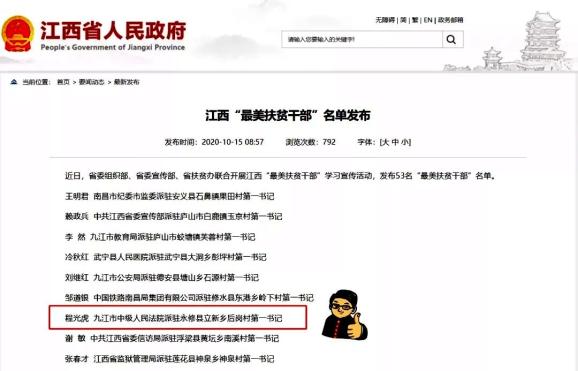 ▲市法院干警程光虎被评为全省最美扶贫干部