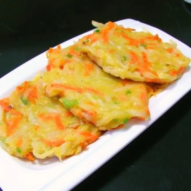 白萝卜削皮切丝,加盐腌制后挤出水分。加入蛋液、葱、虾皮、胡椒粉和面粉搅拌成面糊。平底锅中刷油后,将面糊倒入平底锅中,摊薄后煎至两面金黄即可食用。