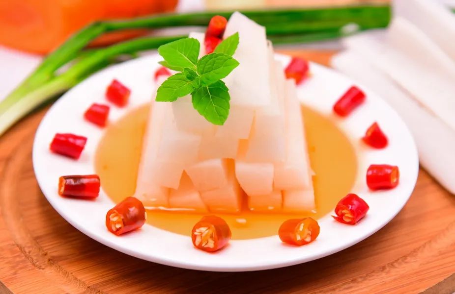 白萝卜消食化痰,面粉养脾护胃,对于因脾胃功能不好导致的痰多咳嗽确实有一定的缓解作用,对于平素吃惯了大鱼大肉的人群来说,适当吃一些这样的主食,既可以消食化积,还可以养胃,可谓一举两得。拌——爽口萝卜片