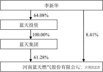 招股书披露的股权结构显示,蓝天燃气大股东为河南蓝天集团有限公司,持股61.28%,公司实际控制人为李新华。李新华曾任液化总公司业务主管及豫南管道总经理,蓝天燃气旗下有2家全资子公司,分别为河南省豫南燃气有限公司、河南蓝天新长燃气有限公司。