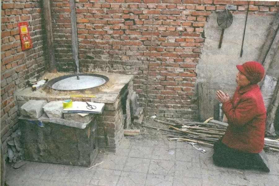 旧时,差不多家家灶间都设有“灶王爷”牌位,没有牌位的,贴着灶王爷纸像。灶王像大多是民间木版年画,上面有灶王、灶王奶奶,还有一只鸡、一只狗,最上方有“三年早知道”,是每年二十四节气和主要节日的年历表。关于灶王奶奶,大多传说是个勤俭贤惠的女人,曾经被丈夫遗弃,丈夫新娶之妻好吃懒做,最后穷了便离他而去。这年腊月二十三,他讨饭到前妻门上,发现妻子已经富贵,便一头碰死在她家的灶膛上,前妻便就地埋下他。后来她祭奠丈夫时,便说是供奉灶王,人们就学着做起来,形成了祭灶风俗,所以灶王像上还有灶王奶奶。关于鸡和狗,有说是丈夫铺张时鸡就啄米不浪费,狗就吃他酒醉后吐的东西,一个生蛋,一个看门,也都有功劳。《丰宁满族自治县志》载“建国前,家家在锅台后设龛供奉‘灶王’,有的设牌位、有的在市场购买印刷纸像,一般印有灶王爷、灶王奶奶,买时不能说买,得说‘请’”。