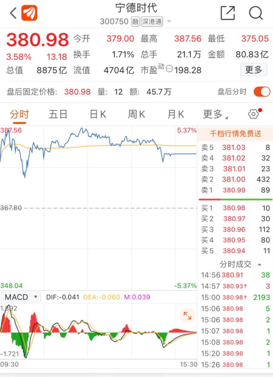 通常限售股解禁会对上市公司股价短期造成一定影响,宁德时代却炸出了不一样的烟火。即使次日即将面临超过400亿市值的机构定增股票解禁,2月3日,宁德时代延续了昨天的涨势,高开3%,收盘于380.98元,相比上一个交易日的收盘价367.80元,大涨3.58%。