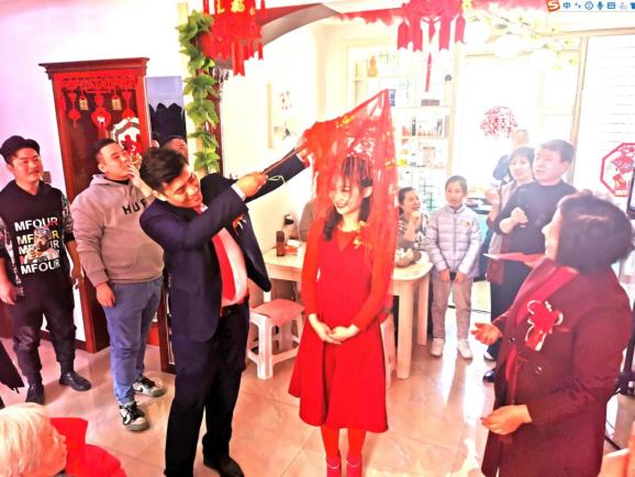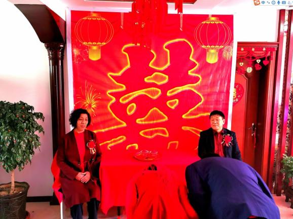 明亮的玻璃窗上贴着红红的“喜”字,屋里挂着大红灯笼,新郎新娘在十多位亲友的共同见证下说着“幸福一生”的誓言……1月30日,在山西省长治市沁源县裕源小区,受疫情形势影响,新人胡方圆、郝文静退掉原本定好的婚宴酒店,谢绝了大多数亲友亲临致贺,在男方家中举办了一场规模不大却很隆重温馨的婚礼。