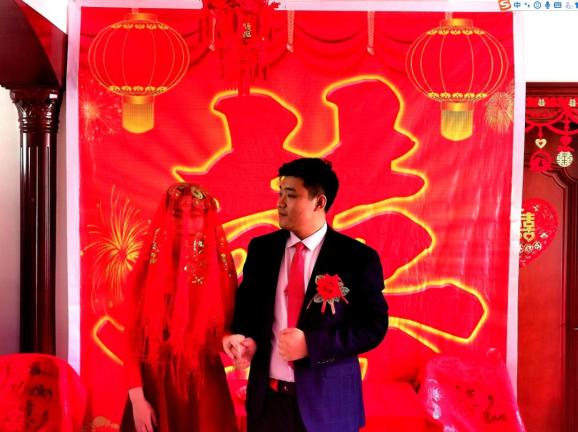 当天是农历腊月十八,是长辈们早就给新人选下的结婚好日子。“原本在酒店定了十多桌,邀请了100多人参加我们的婚礼,但后来考虑到疫情防控需要,人员聚集风险大,所以改在家里办。”婚礼从俭,但仪式感不减。一大早,郝文静就穿上一身红色的漂亮礼服,化了个淡妆,胡方圆则穿上一身帅气的西装,扎上红领带,两人欣喜地等待着亲友们的到来。
