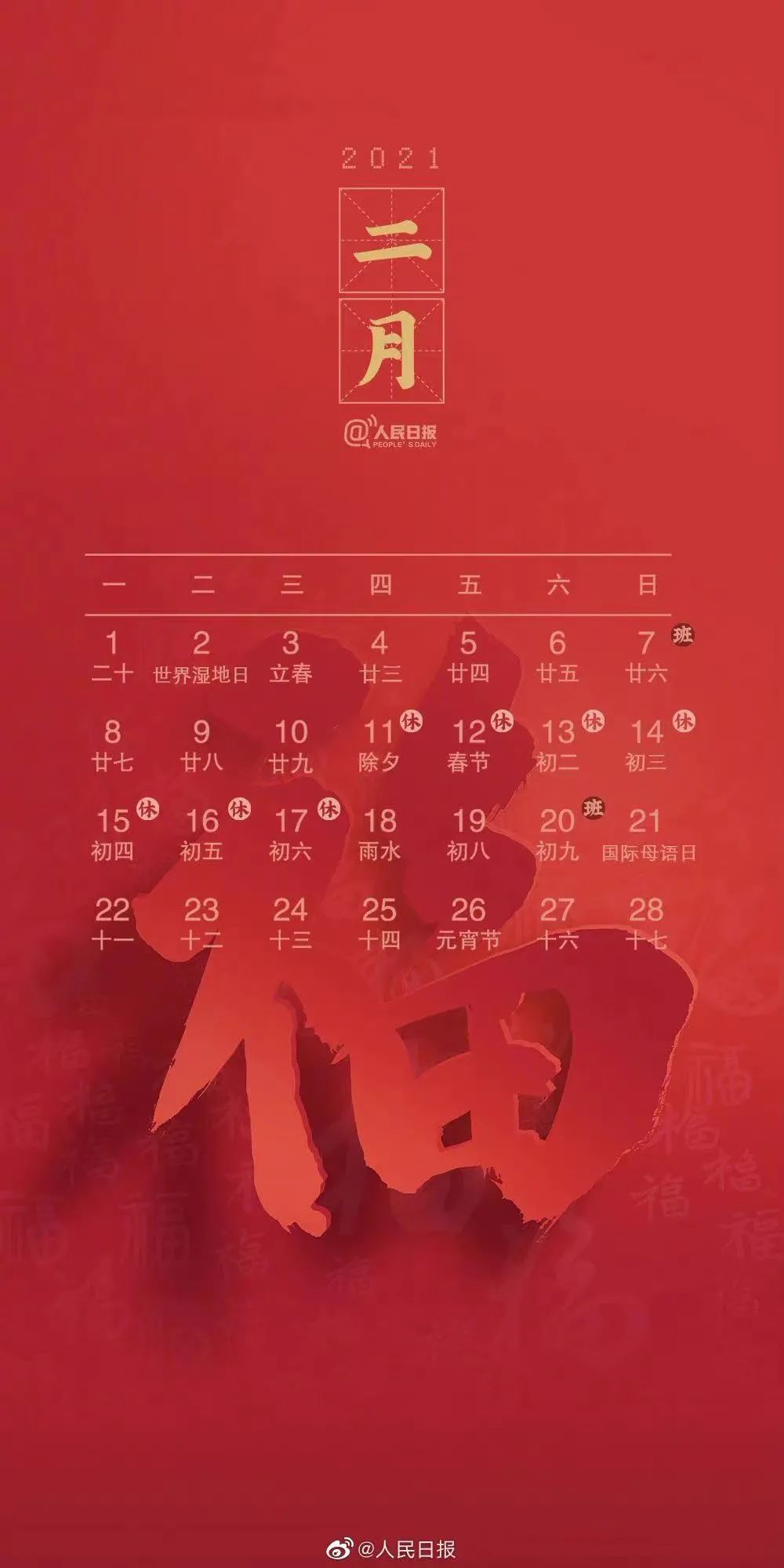 进入2月份,就意味着马上就要过年了。再过9天就是除夕了,但不得不提醒大家:本周日(2月7日)要上班,春节放假后的周六(2月20日)还是要上班。(人民日报)12岁女孩遭老人骚扰拍照取证求助