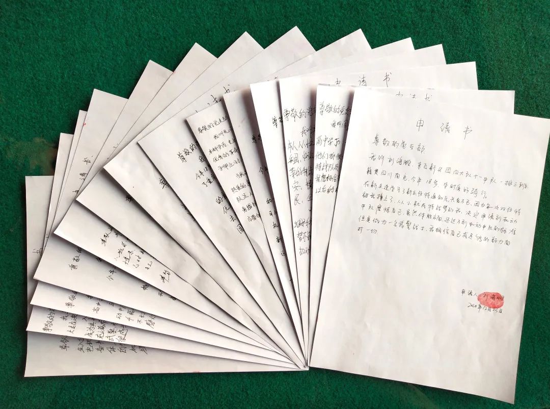 仔细端详这些申请,或许话语比较粗糙,或许还有些错别字,或许读起来有些让人忍俊不禁……但这些纸张与内容,触摸起来是有温度的,品读起来也是充满“战力值”的。新战士们全文“亲笔落玉珠”,是不想因打印机的墨粉照排而失去灵魂,亦不想因“他山之石”的影响而掩盖内心真挚的情感,全文既没有华丽堆砌的辞藻,亦没有“排山倒海”的呼喊,在这背后有的是一颗颗勃勃跳动的心,每一份都是源自内心深处的真挚情感,每一段落都是尽抒初心的味道,每一字句都是心中坚定的信念,更是向战的宣示!