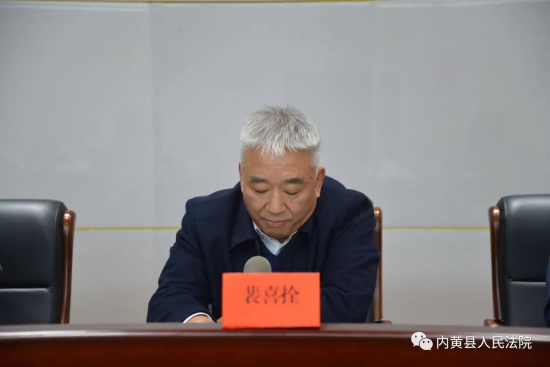 裴喜拴作了重要讲话指出群众满意是对法院工作的最大的肯定,包括法院在内的所有政法机关都要在县委坚强领导、县人大监督、县政府支持和县政协民主监督下,在县委政法委的直接领导下,坚持司法为民,树人民公仆形象。