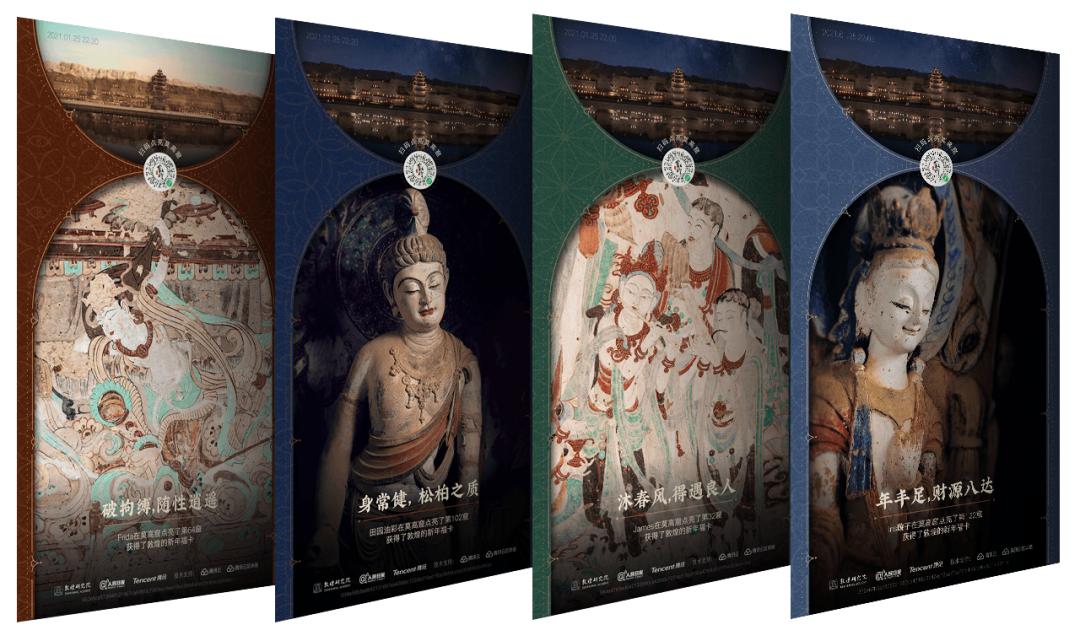 2月4日,敦煌研究院联合人民日报新媒体、腾讯在“云游敦煌”微信小程序推出“点亮莫高窟”功能,利用移动数字技术和区块链技术,首次在线上重新呈现一千年前莫高窟的点灯夜景,在网络空间复原了莫高窟燃灯民俗,与用户共同打造莫高窟“一川星悬”的盛大场面。这是“云游敦煌”小程序迈入2021年的首次功能升级。该小程序于2020年2月疫情期间上线,一年间游览量已突破2800万人次。