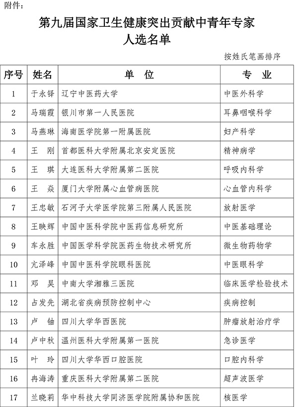 (原题为《关于国家卫生健康突出贡献中青年专家选拔结果公示的通知》)