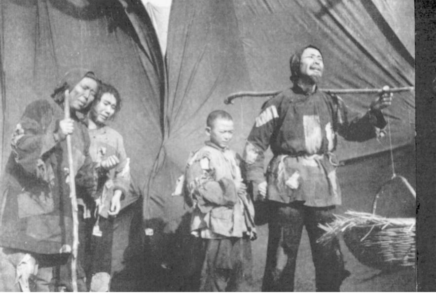 《血泪仇》剧照——时任第四四四团团长赵国璋摄。起义士兵徐树礼、李开国说:为了安全起见,后来看戏,一律由干部将子弹收起来,再逐一验枪,干部、骨干分散在队列里,以便及时制止入了戏、情绪失控的士兵误伤演员。