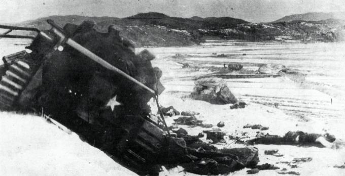 被我军炸毁的英二十九旅坦克。图源:《战斗在朝鲜》(第五十军政治部1955年编印)