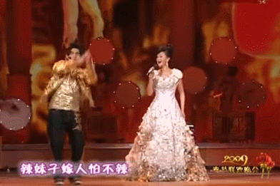 像2009年的《辣妹子mix本草纲目》,就给人一种耳目一新的感觉。周董在旁嗨到不行,和端庄的宋祖英形成鲜明的对比。不过不突兀,反而显得很可爱。