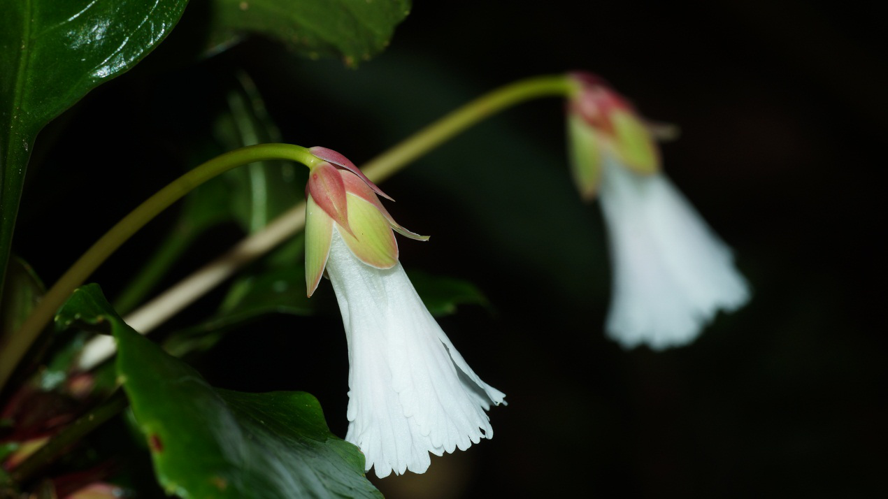 得见这美丽的天鹅的照片,是从圈内朋友刘基男那里看到。他在深入云南某处森林腹地进行植物科考时,在一块潮湿的岩石边,发现了一株正值花期的华岩扇。其花朵纯白、优雅,于幽深之中悄然绽放,犹如落入凡间却不染尘埃的精灵。