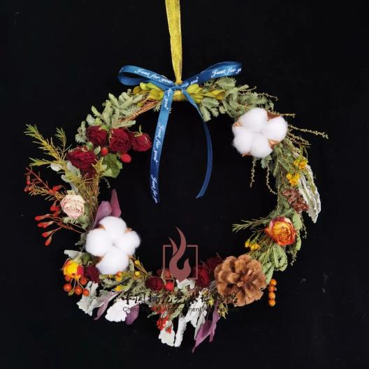 干花花环有几种植物却非常适合做成干花,比如千日红、绣球、麦秆菊、仙女满天星、情人草、水晶草、兔尾草···这些花材做成干花后,依然能保持原有的美感,而且可以放置半年以上。