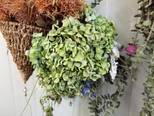 干花,顾名思义就是把花晾干、风干,这样它就不会那么快腐烂了,为了保持花枝的最佳自然状态,最好在它还新鲜的时候倒挂在干燥的通风位置,温度在10度以上,越干燥越好,有利于快速干燥。