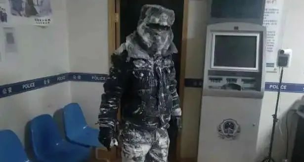 哪怕警帽挂满冰霜,耳朵冻得红肿掉皮,李永庆也只是趁休息间隙喝口热水、拍拍警帽上的霜、敲敲麻木肿胀的双腿,然后戴上警帽再次回到岗位上。