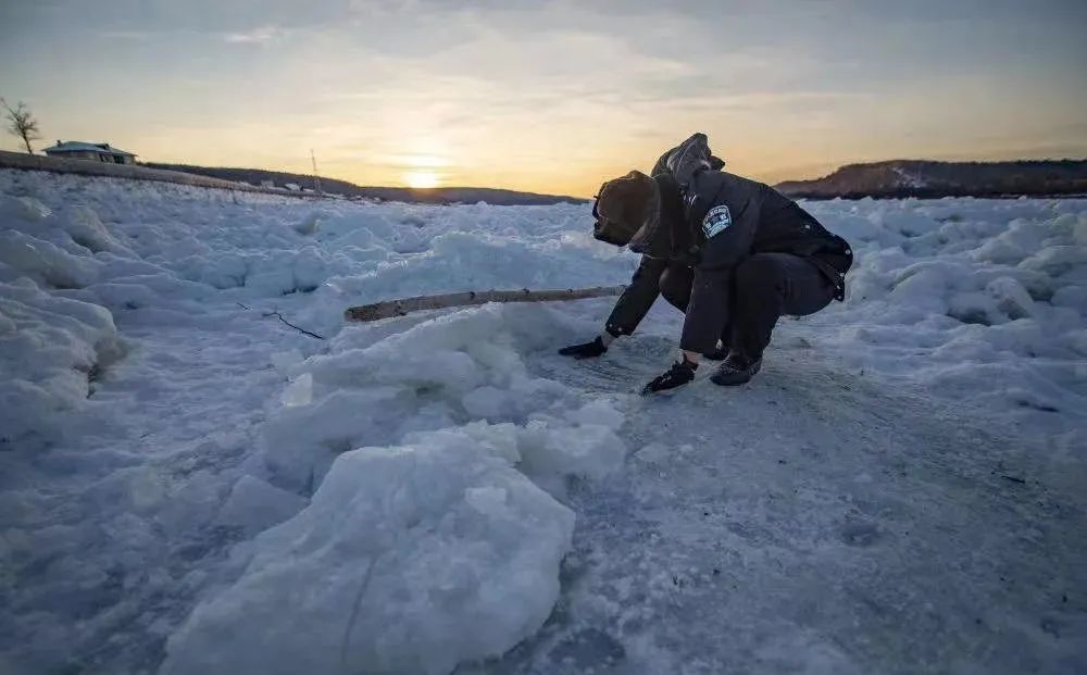 在“神州北极”漠河,中国“最北”夫妻警务室——黑龙江省漠河市公安局北极边境派出所洛古河村夫妻警务室民警史先强安排好正在休产假的妻子、辅警沈欣,巡逻在封冻的江面,办好百姓“鸡毛蒜皮”事儿,让警徽闪耀在祖国最北方。
