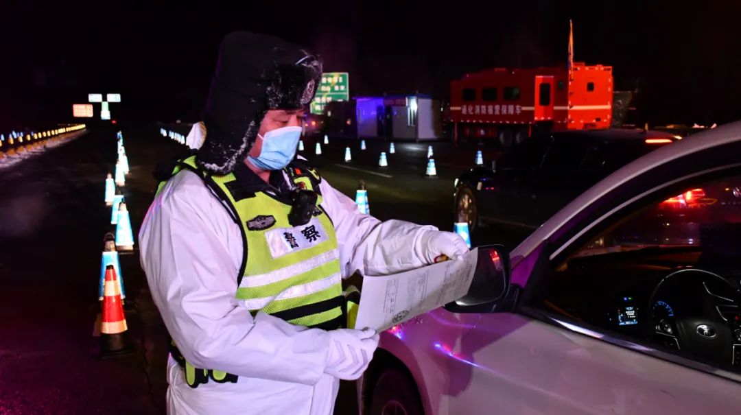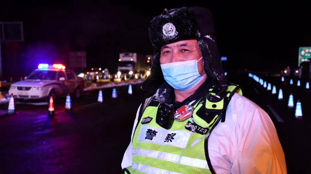 刺骨寒风中,从警30余年的吉林省通化市公安局交警支队老民警李永庆面对过往车辆,认真打出标准手势、仔细核查人员信息、耐心宣讲防疫要求……一遍遍,他不厌其烦。