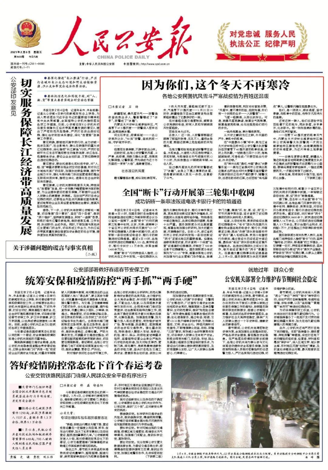 近段时间,各地公安民警抗风雪、斗严寒、战疫情,用毅力融化冰雪,用微笑化解困难,让警察蓝、荧光绿成为这个冬天里的一束束“火焰”,温暖着百姓。