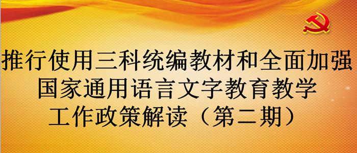 ▲2014年中共中央、国务院关于加强和改进新形势下民族工作的有关文件指出,全面开设国家通用语言文字课程,全面推广国家通用语言文字,确保少数民族学生基本掌握和使用国家通用语言文字。