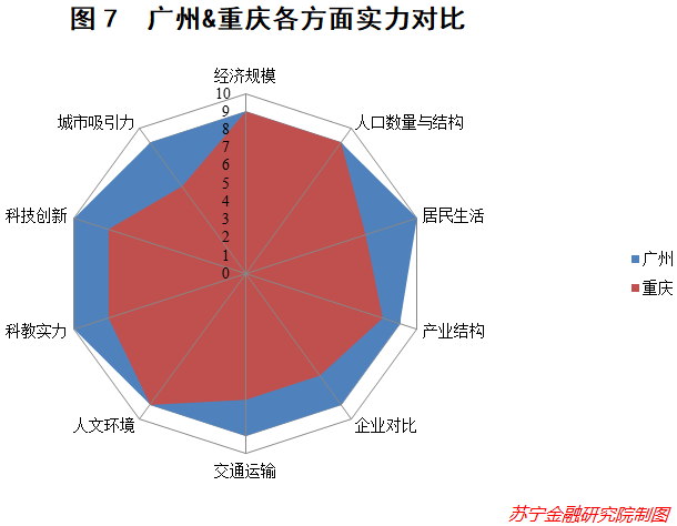 结论:科教实力上,广州和重庆差距较为明显。九