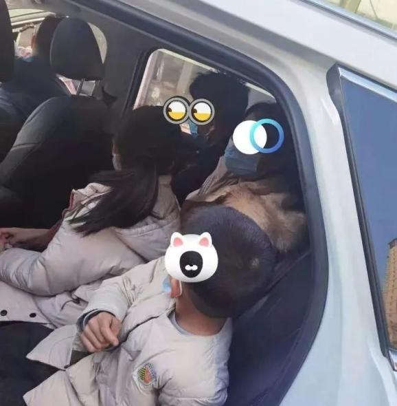 2月5日下午15时15分许,邯郸交巡警邯山二大队民警在巡逻中,发现一辆白色马自达汽车疑似超员,透过车窗可以看见车内人头攒动,遂示意驾驶人靠边停车接受检查。当打开车门后,民警发现这辆5座的汽车竟然挤进去8个人,前面座位除驾驶人之外,副驾驶一女士怀里还抱着一名六七岁的孩子,而后面座位上人员更多,竟然挤进了5人,其中一名孩子没地方坐了竟然只能蹲在车内。