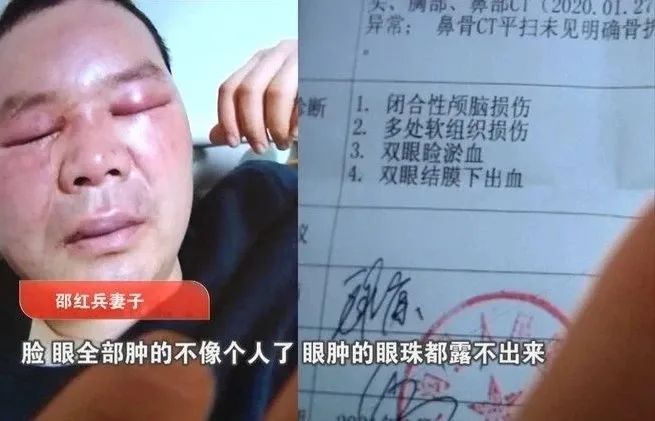 邵红兵出示的扶沟县人民医院诊断证明书显示,他的伤情包括闭合性颅脑损伤、多处软组织损伤、双眼睑淤血和双眼结膜下出血。该企业还威胁说,“谁再举报,举报一次打一次”。
