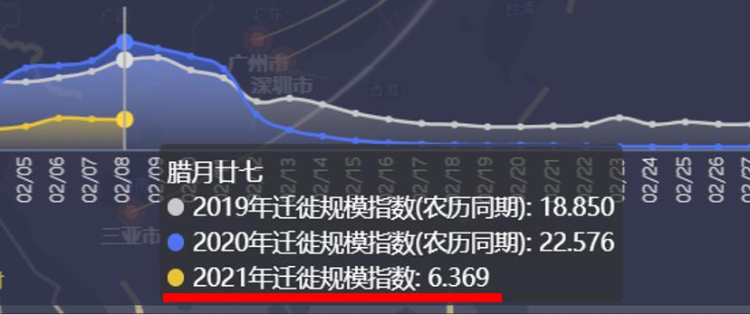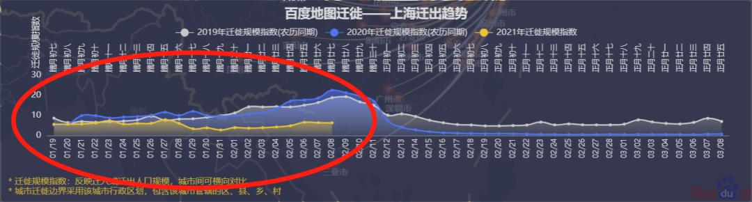 可以看到,2021年这个春节从上海迁出的人口规模是近3年最低