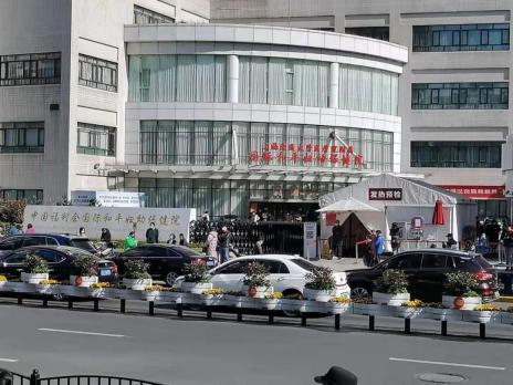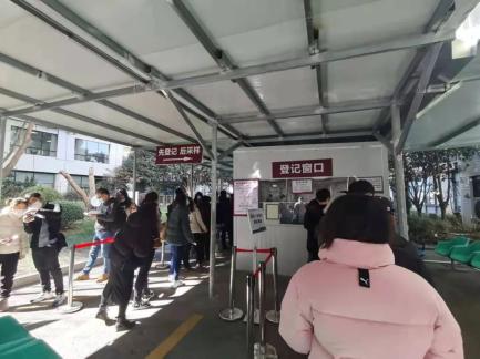 各大医院门口过年期间虽然很多诊室放假但是做核酸部门要一直坚守在岗位上